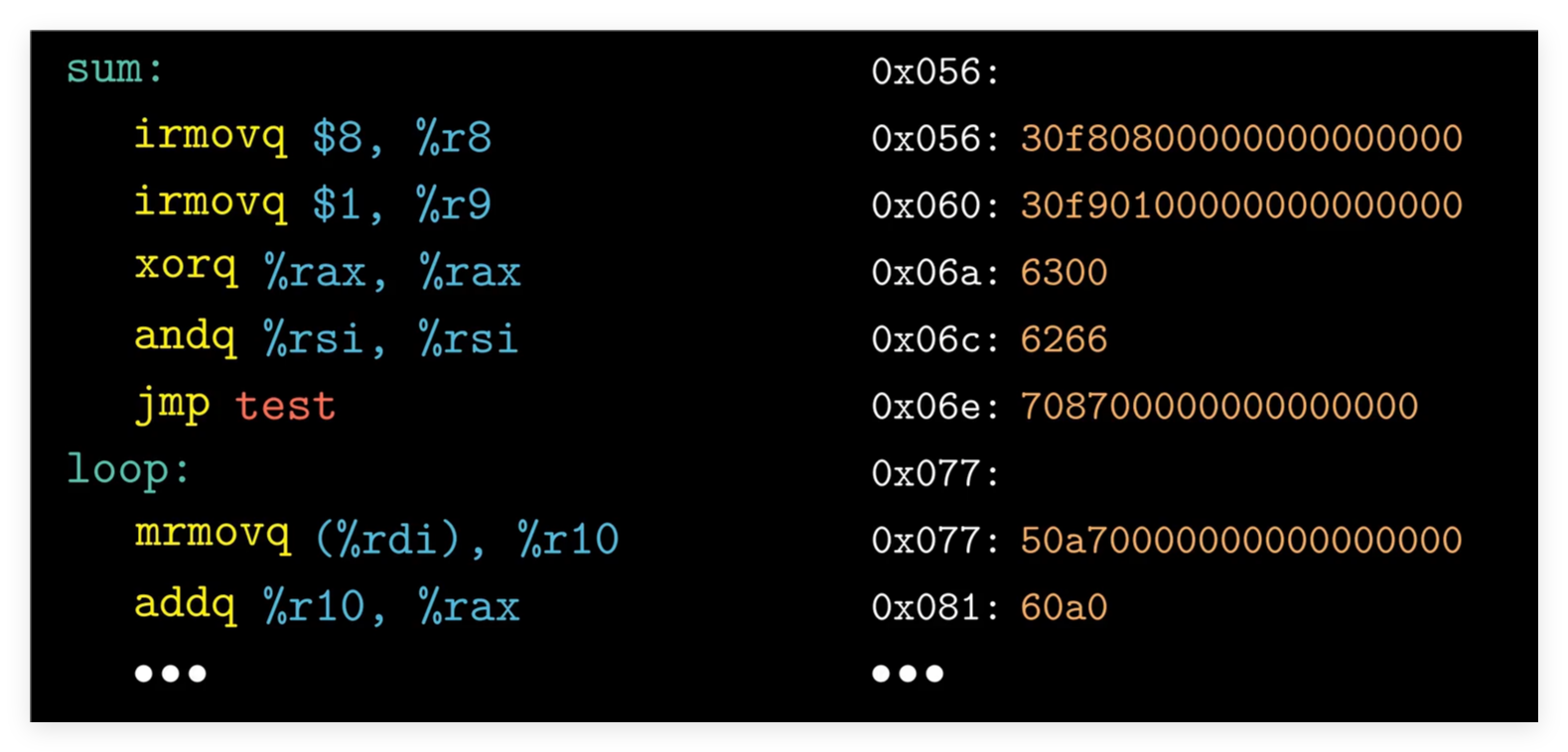 接下来通过一个例子看一下C程序翻译成Y86-64