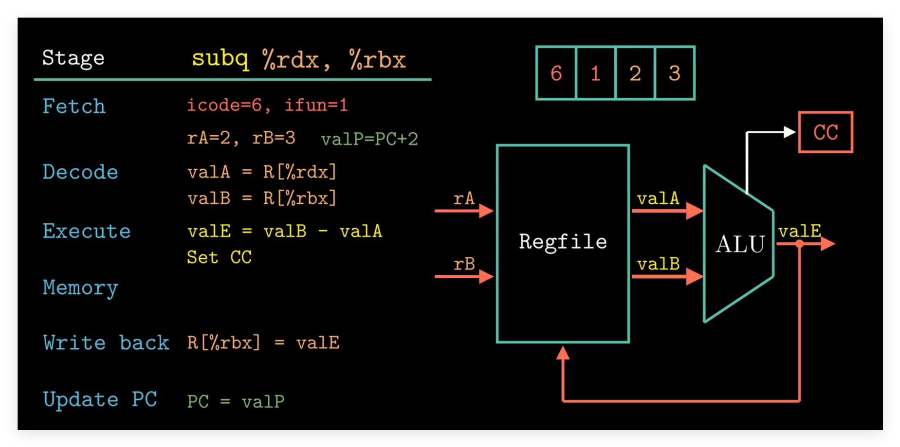 - Fetch: 减法指令的两个操作数都为寄存器,因此可以算出当前指令的长度为 2 bytes