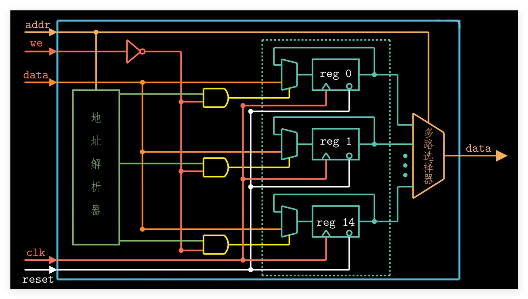 寄存器堆具体构造如下,详情请自行学习浙江大学《数字逻辑设计》,讲的内容还是相当优质的。