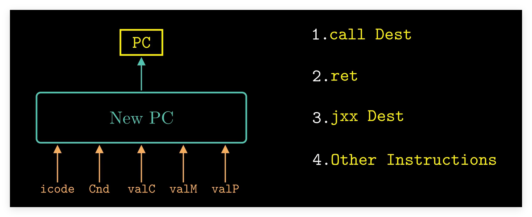 在访存阶段会从内存(栈)中读出返回地址,这个返回地址就是新的 PC 值 - 如果当前执行跳转指令