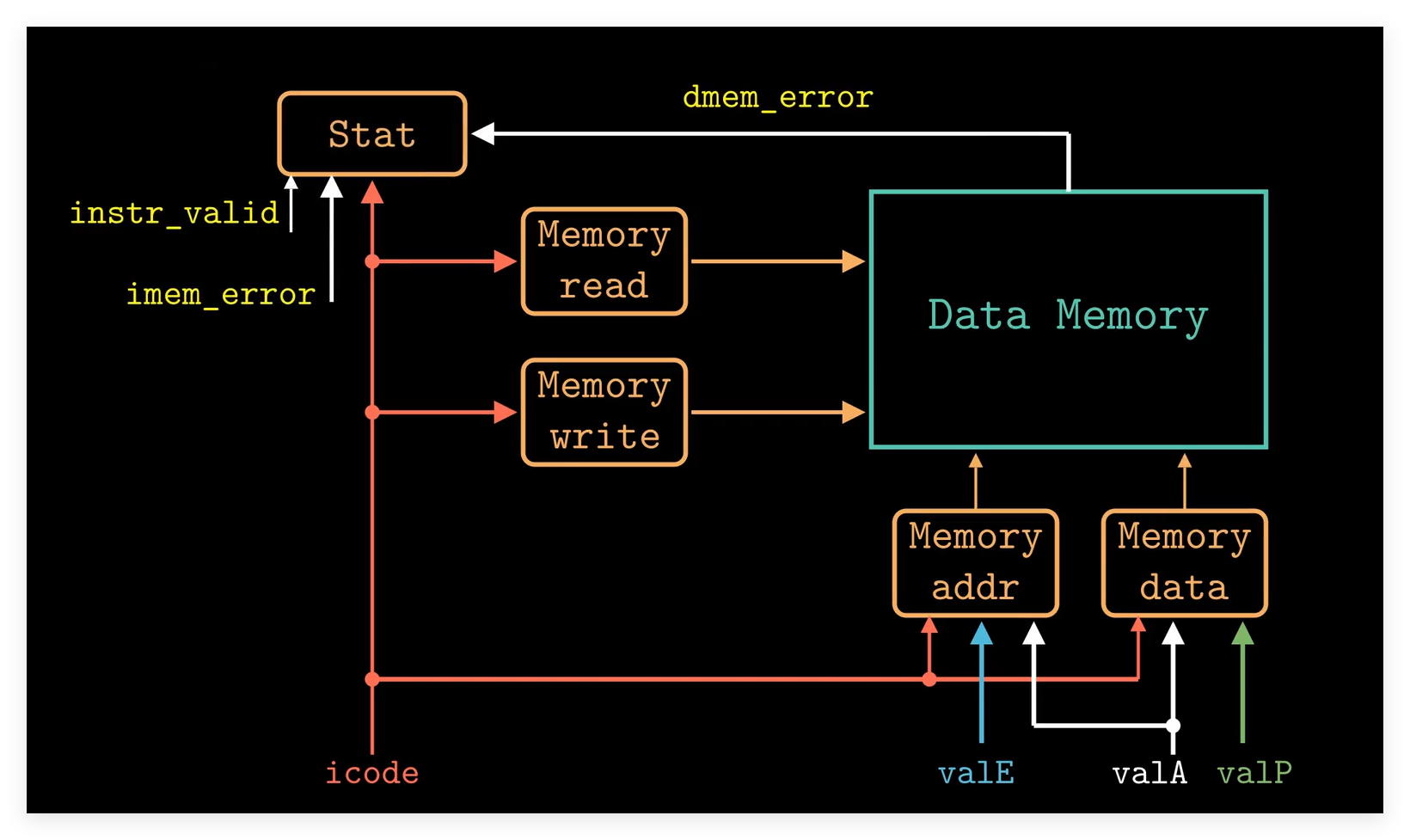 - 访存阶段的最后操作会根据图中的信号计算状态码