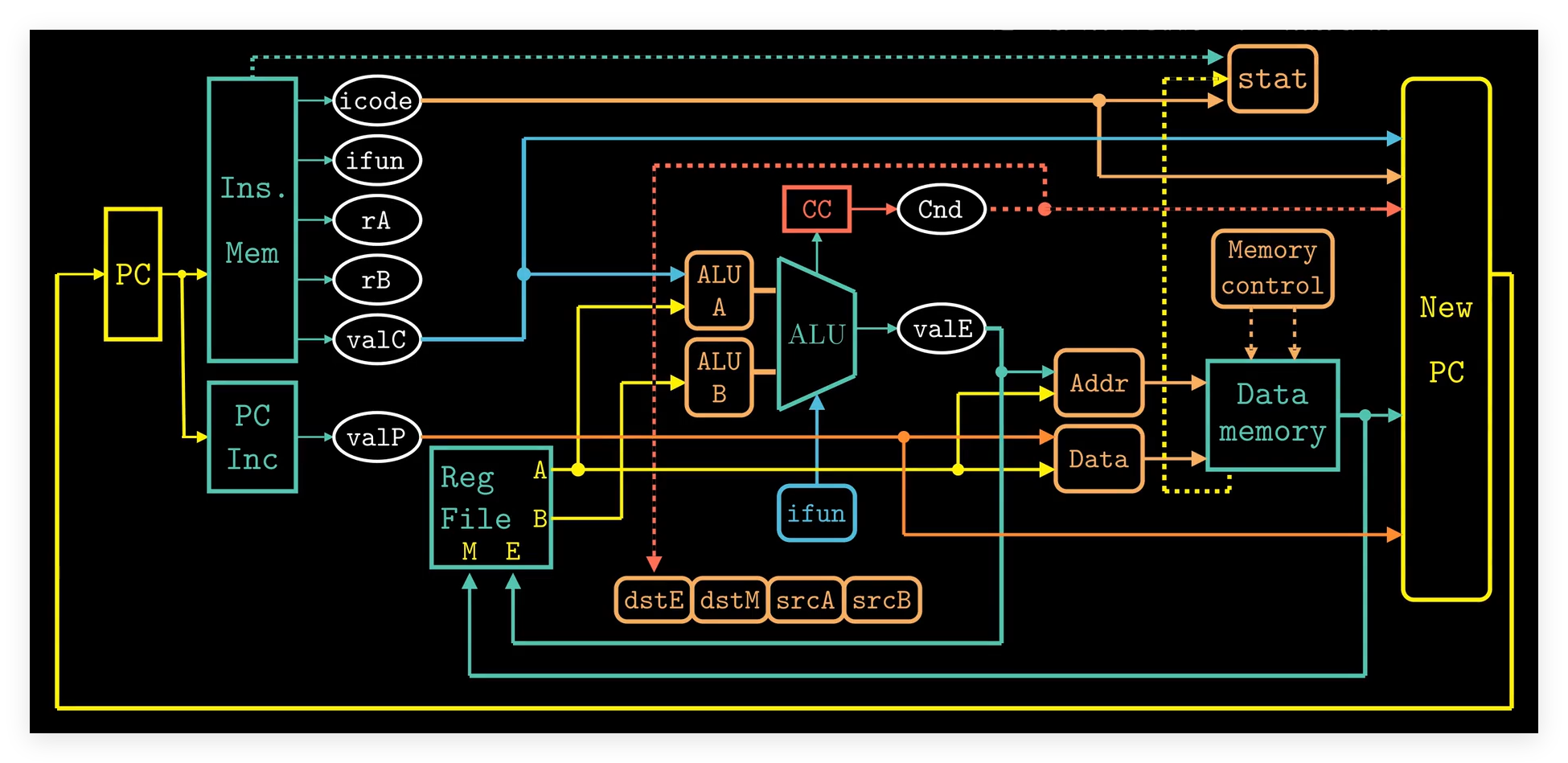 - Execute: ALU 根据读取的数据执行算数逻辑运算,并根据结果设置条件码寄存器