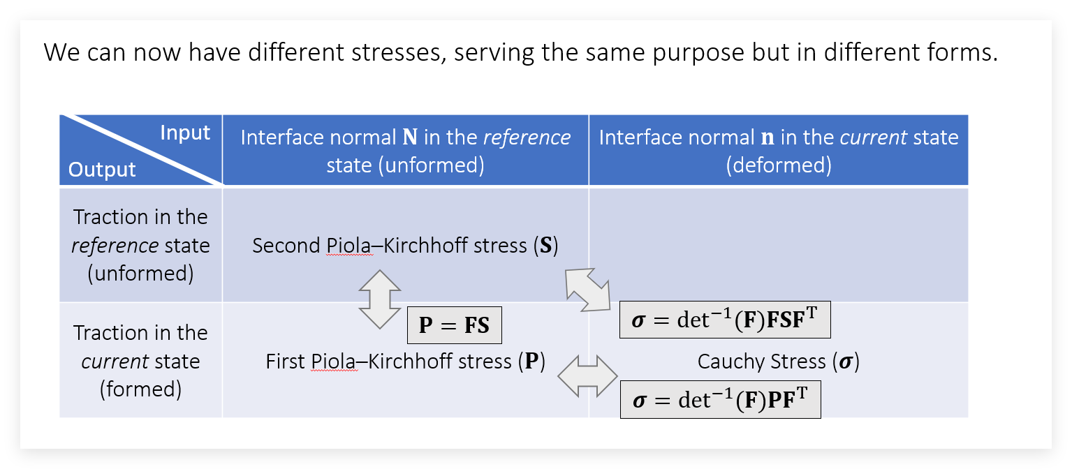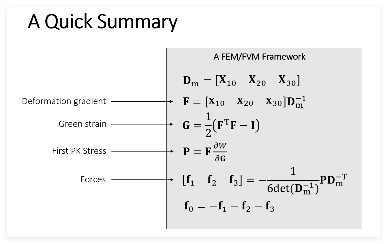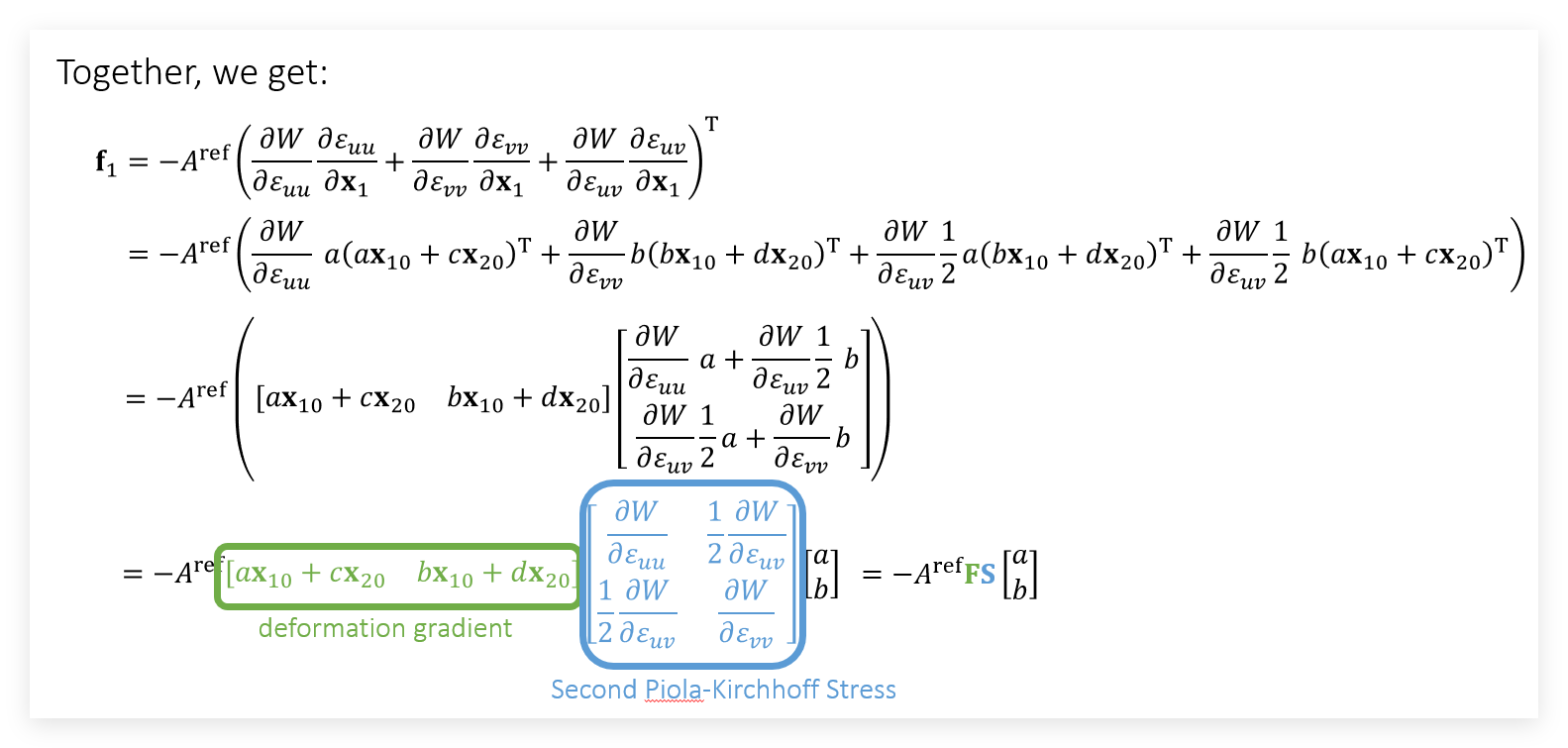 其中 Second Piola-Kirchhoff Stress 是上一小节 FEM 用的,而 Cauchy Stress 是本节 FVM 需要用到的,因为我们需要计算形变后的法线变成形变后的力。