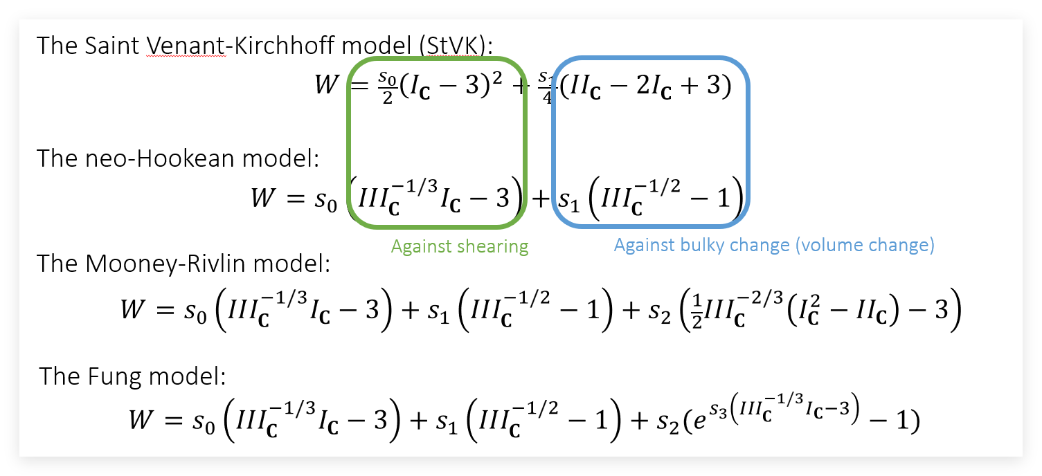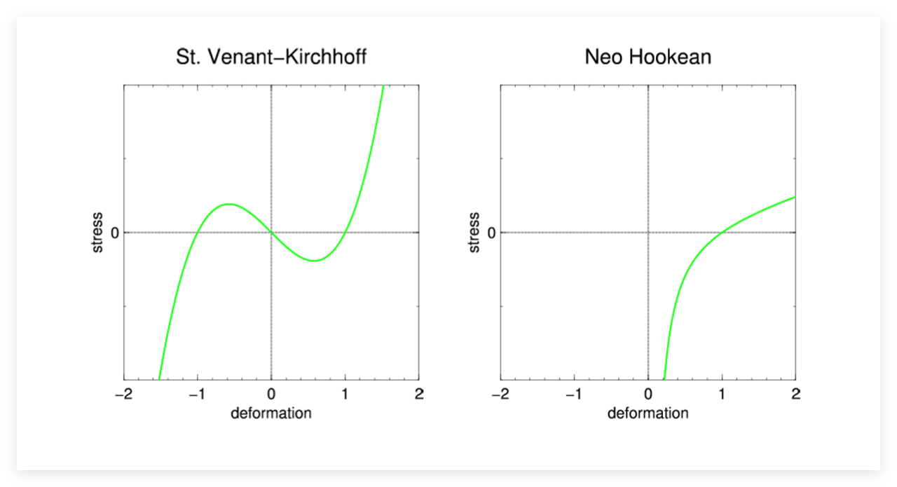 在 FEM 一节中,我们使用 Saint Venant-Kirchhoff Model, StVK 来作为能量密度模型。本节再介绍几种不同的模型。
