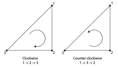 OpenGL 在渲染图元的时候根据三角形顶点的环绕顺序来确定一个三角形是正向还是背向的,默认情况下,逆时针顶点定义的三角形会被处理为正向三角形: