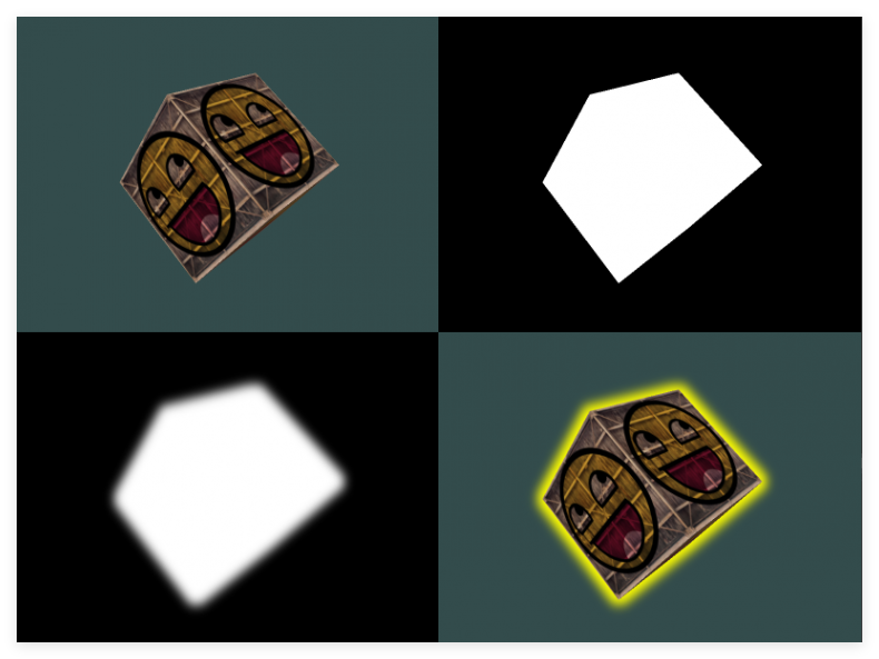 在一些游戏中,我们常常需要为一个选中物体添加有色边框,而这个操作可以通过模板测试完成。为物体创建轮廓的步骤如下: