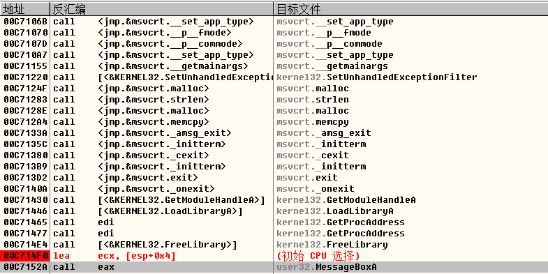 对于初学者来说,一个笨拙的方法是在启动函数种的每个 call 调用时都使用 step into 进入,然后检查代码中是否调用了我们的 MessageBox API,如果没有,则 Execute till Return 快速退出。