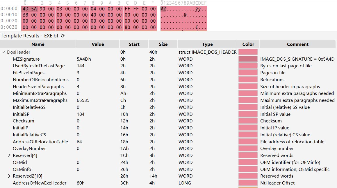 注意是小段序,因此此处 e_lfanew 的值为 00000080
