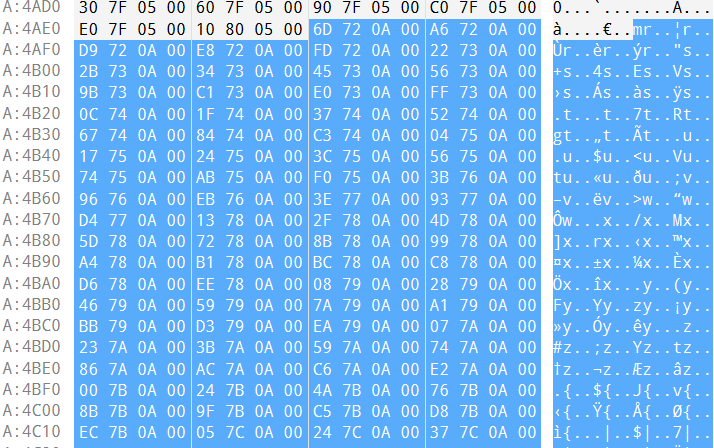 | 0A3090h | AddressOfNames | 000A4AE8 | 0xA4AE8 |