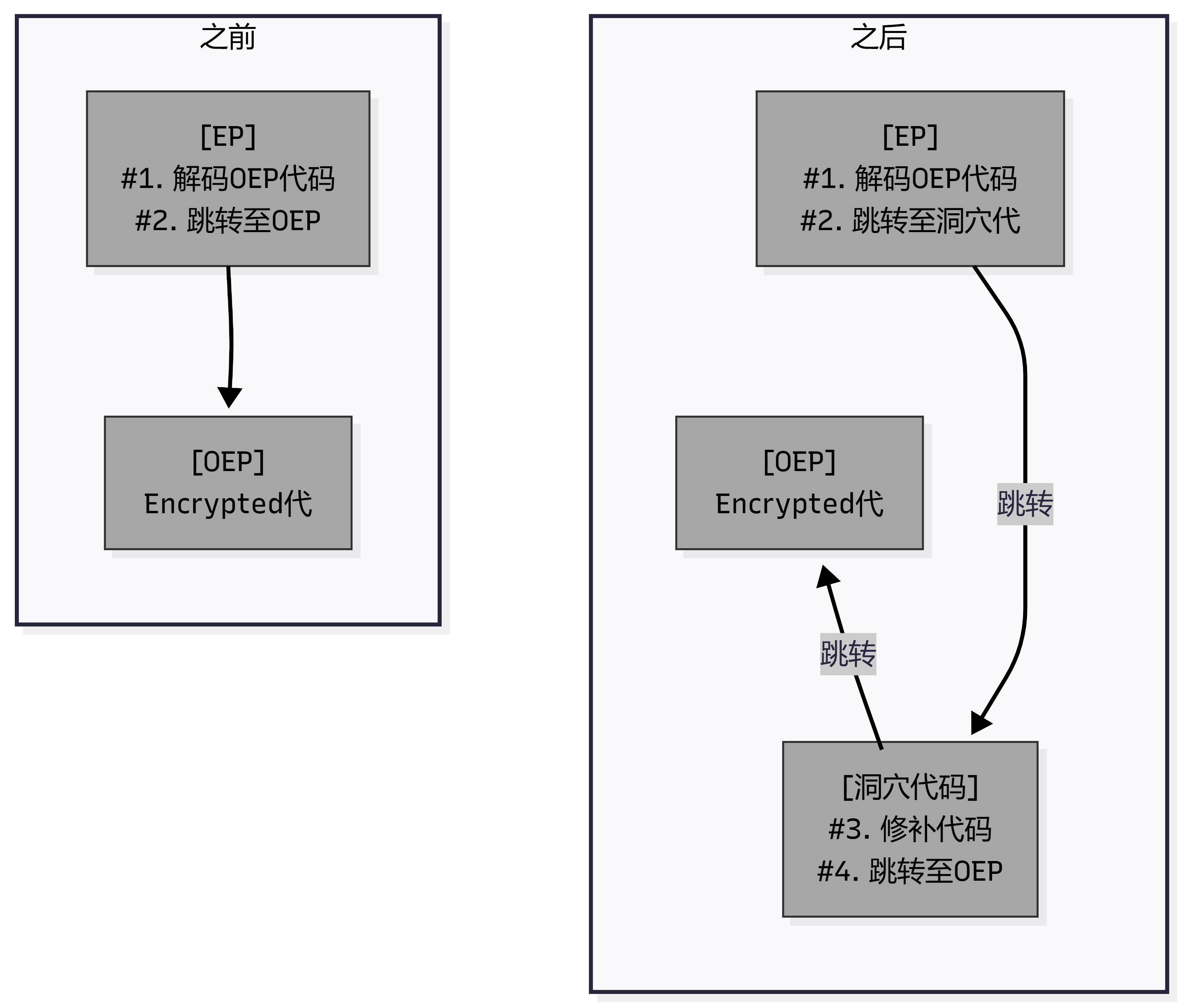 根据之前的分析,这两个数据都位于二次加密的区域,我们很难直接对加密后的数据进行修改,因此采用内嵌补丁的方式。