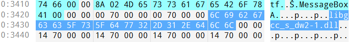 对于 Name,我们找到其 RAW 位置的库名称为 libgcc_s_dw2-1.dll。