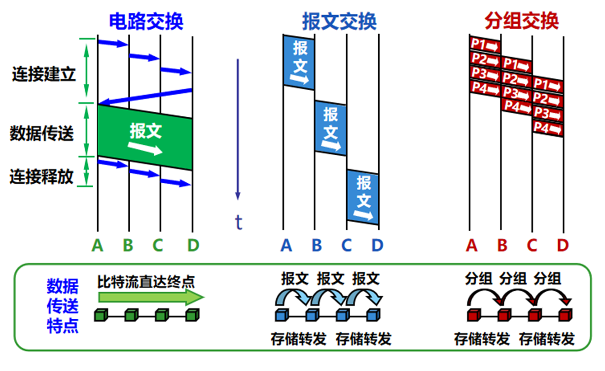 路由器(Router)在网络核心部分起到重要作用,它对收到的分组进行存储转发来实现分组交换。为了了解分组交换的原理,我们首先学习电路交换和报文交换两个概念。