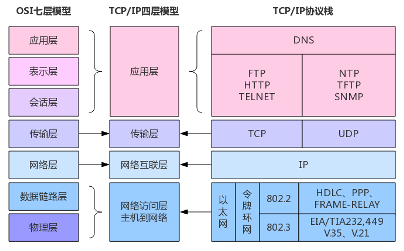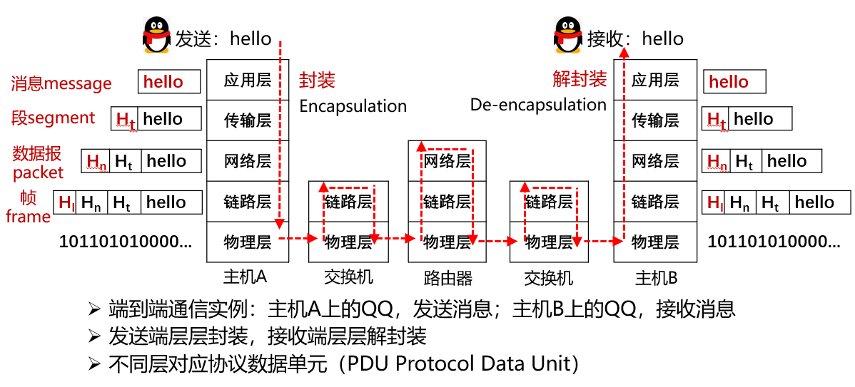 - 物理层称比特流,数据链路层称帧,网络层称分组,传输层称报文段
