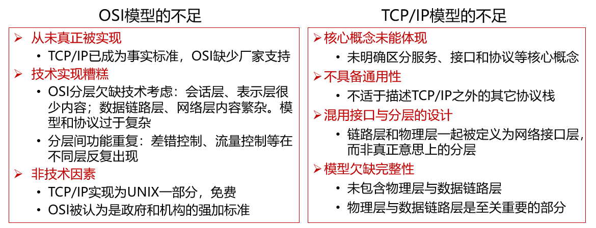- <3> OSI 参考模型先有模型,后有协议规范,适合通用描述各种网络;而 TCP/IP 模型现有协议栈,后建立模型,因此不适合任何其它的非 TCP/IP 网络