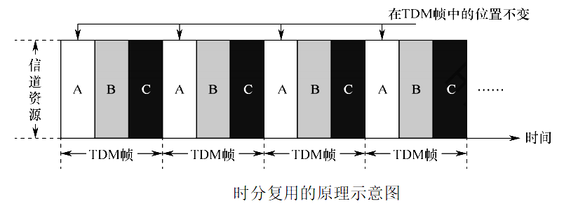 Time Division Multiplexing 将信道的传输时间划分为一段段等长的时间片,称为 TDM 帧,每个用户在每个 TDM 帧中占用固定序号的时隙。