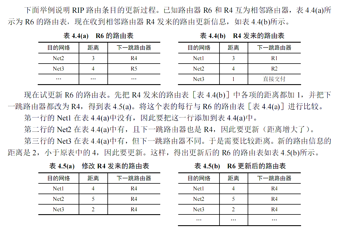 路由器刚启动时只知道自己到直接相连的几个网络的距离为 1。每个路由器仅和相邻路由器周期性地交换并更新路由信息,经过若干次交换和更新后,所有的路由器最终都会知道到达本 AS 内任何网络的最短距离和下一条路由器的地址,称为收敛。