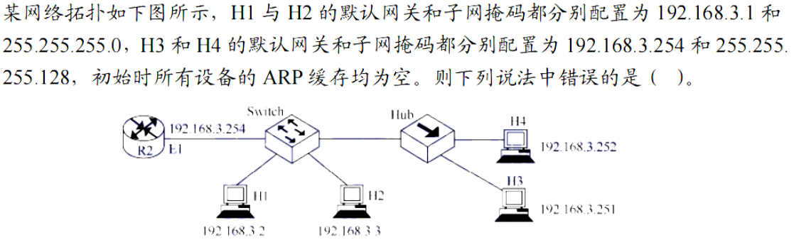 - A. 若 H1 向 H3 发送数据,则 H2、H3、H4 都能收到 H1 发来的 ARP 请求报文 ✔