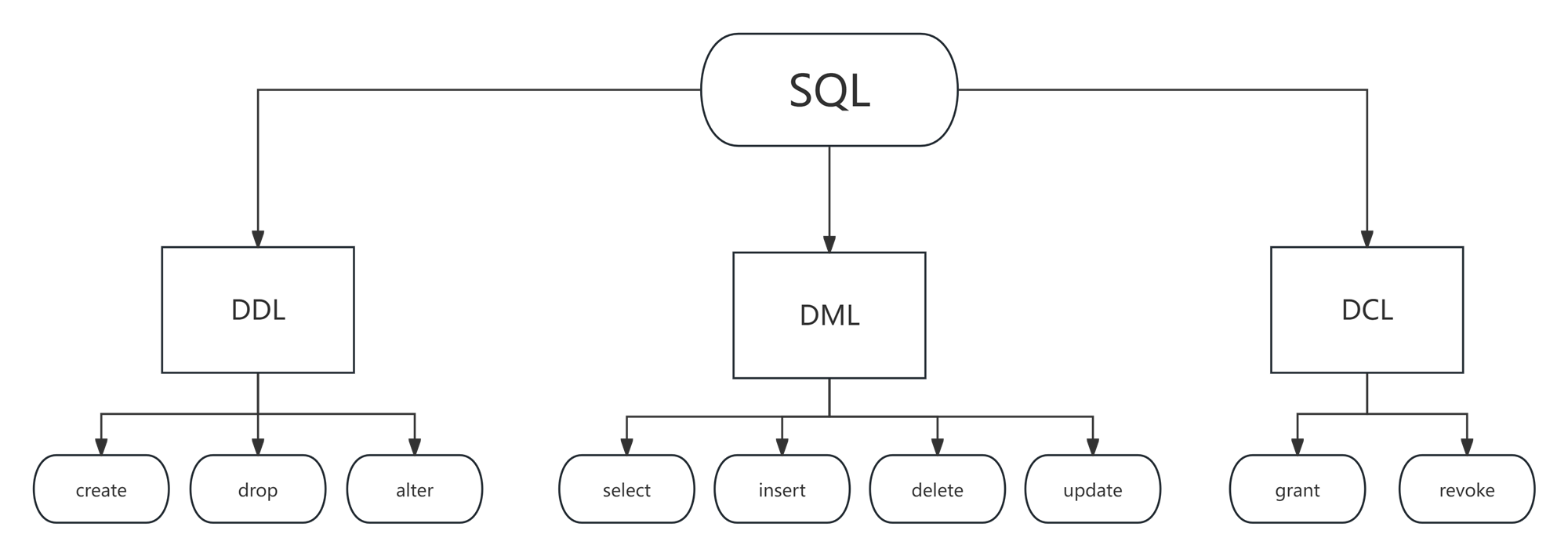 作为一个关系型语言,SQL 主要由以下三个方面组合而成: