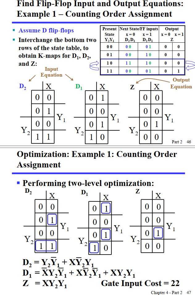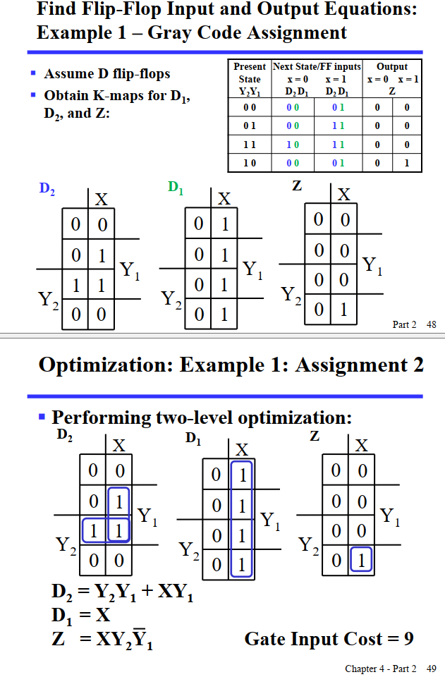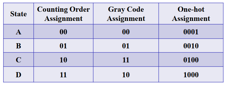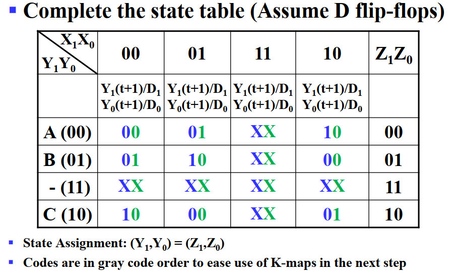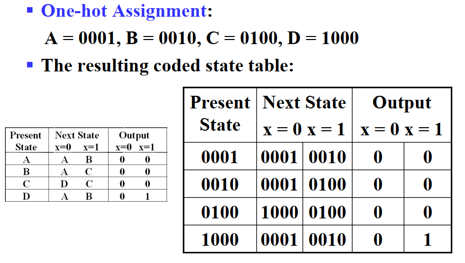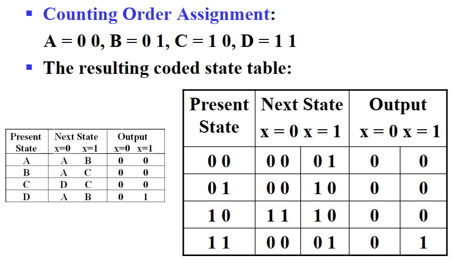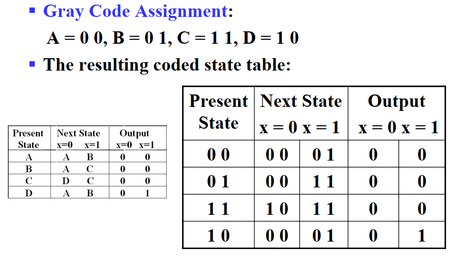 - State Minimization - 根据表进行优化,可以消去重复的状态
