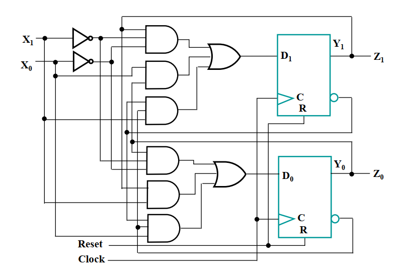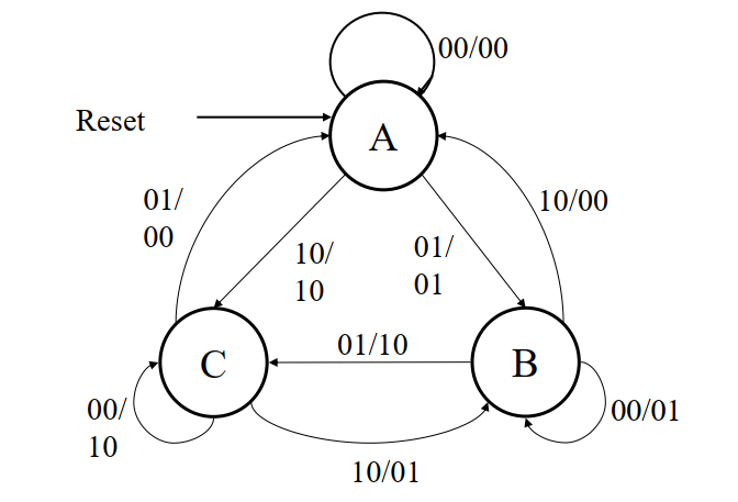 - Ouput: \((Z_1 ,Z_0) =(X_1, X_0) +(Y_1, Y_0)\) (Mealy Model) or \((Z_1 ,Z_0) =(Y_1, Y_0)\) (Moore Model)