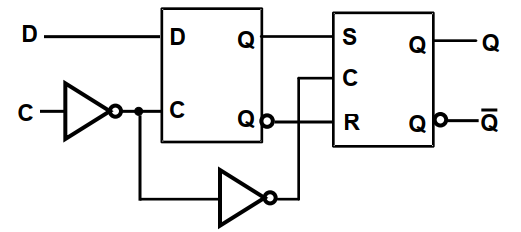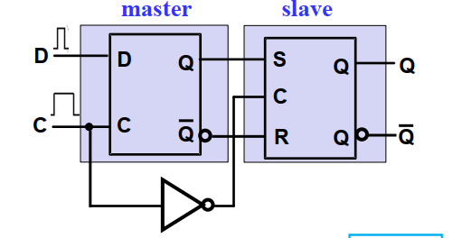 但是如果\(\overline{Q}\)与D相连,在clock时钟信号有效的时间内,Q的值可能会多次变化,导致我们无法确定C置0时Q的输出是什么。这就是我们常说的空翻现象