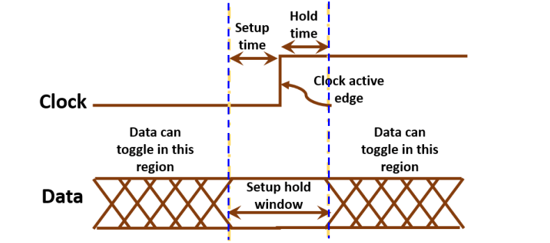 - 二者合起来称为Flip-Flop的Setup hold window,这段时间需要保证数据是稳定的