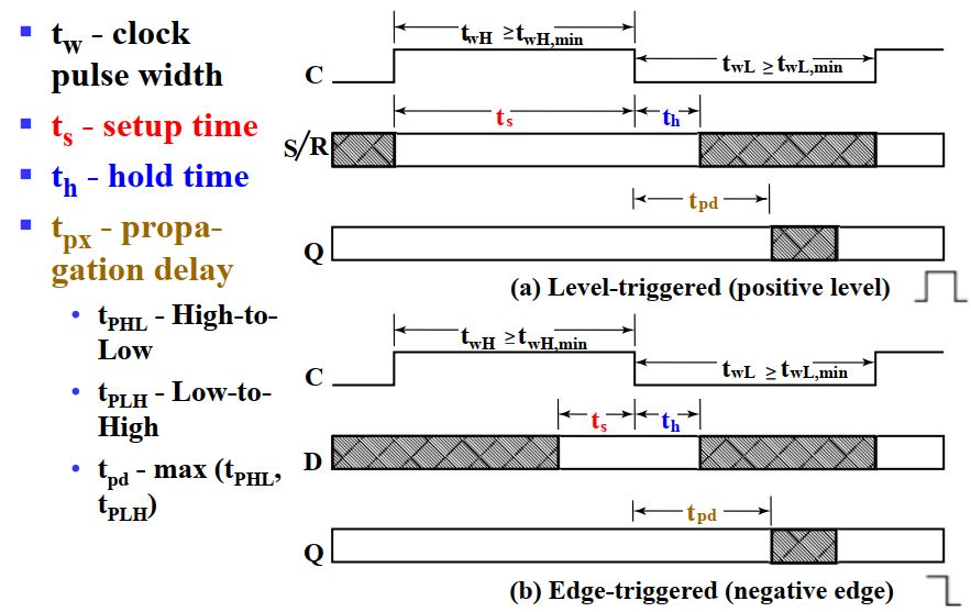 - \(t_s \& t_h\) - flipflop setup time & hold time