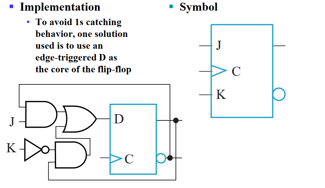 - 与SR-FlipFlop功能基本相同,但是 允许 J=K=1 ,并且J、K均为1时输出反转