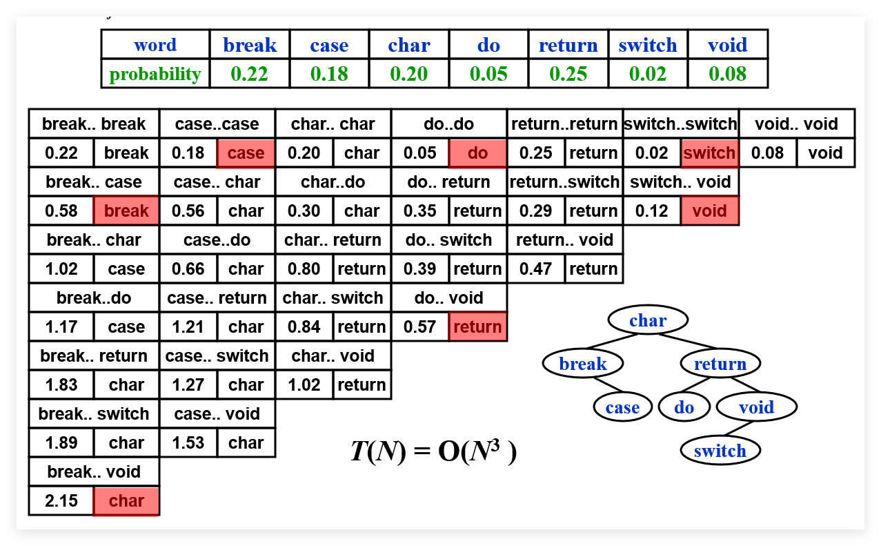为节点构造的最优二叉搜索树,\(1.02\) 表示该最优二叉搜索树的 \(cost\) (\(0.22*2+0.18+0.20*2\) ),case