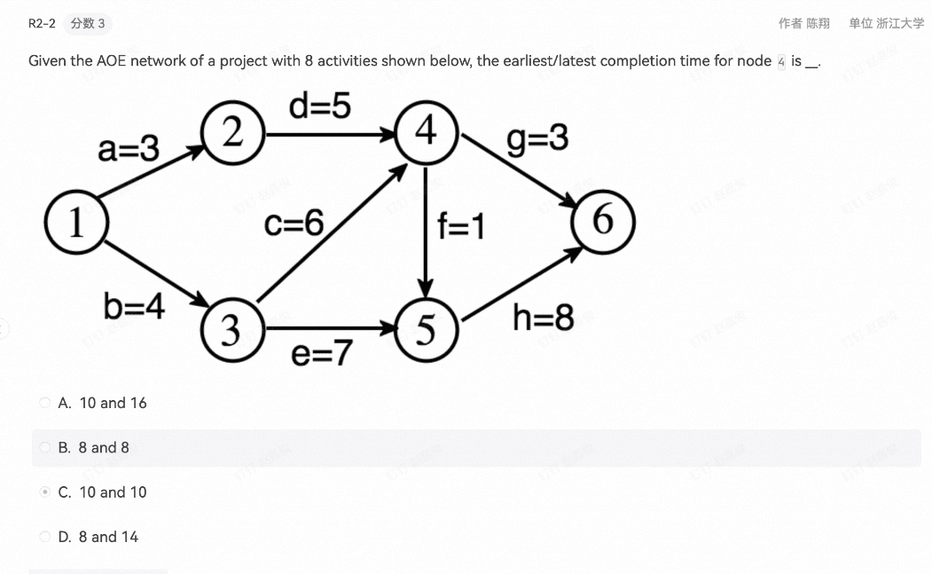 - 拓扑序最早最晚完成时间 答案选 C