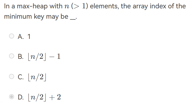 - 最大的元素只会出现在叶节点,即 N/2 到 N 的范围内