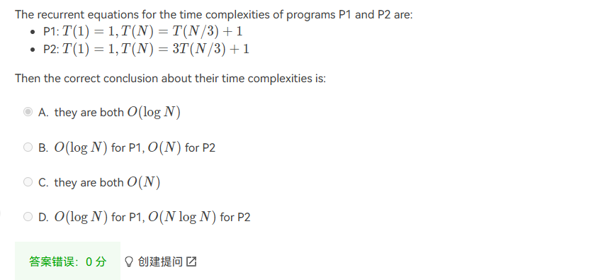 - \(T(N)=o(f(N))\ \Rightarrow\) \(T(N)=O(f(N))\) 且 \(T(N)\ne\Theta(f(N))\),即T(N)增长比f(N) 慢