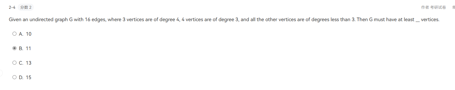 - 要保证含有10个顶点的无向图连通,所需要的最少边数是: