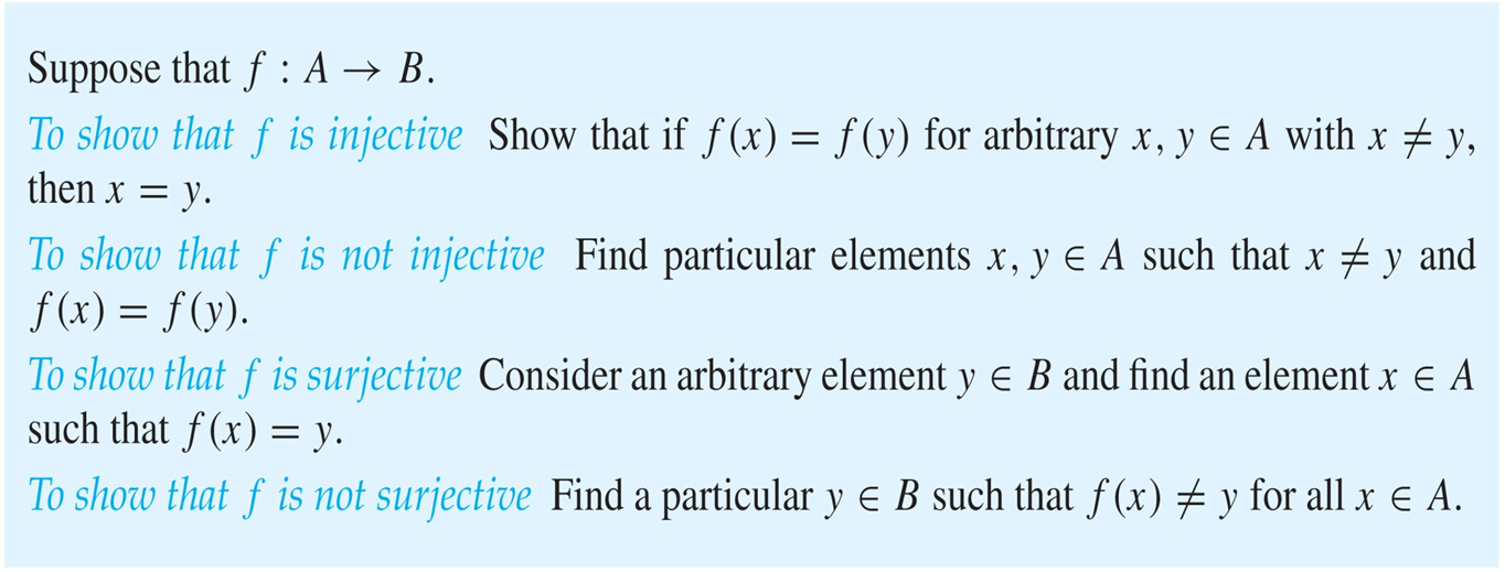 - \(\forall b\in B\ \exists a \in A(f(a)=b)\)
