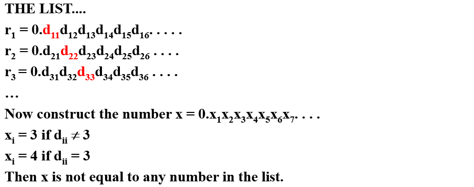 把所有函数都列出来,为f1,f2,f3,f4.....,然后你找一个G(n),让G(n)!=fn(n),这样G(n),就不在所有的f里面,所有不可数了