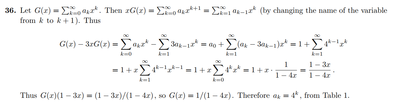 - eg: \(1+x+...+x^k= \sum_{k=0}^\infty x^k =\frac{1}{1-x},|x|<1\)