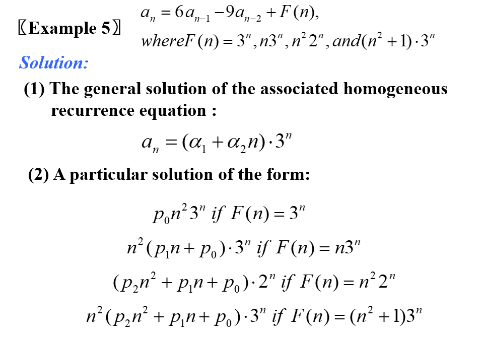 - 特别地,当 \(F(n)\) 的形式是\((b_tn^t +b_{t-1}n^{t-1} +...+b_1n+ b_0)s^n,\ b_i,s\in R\)