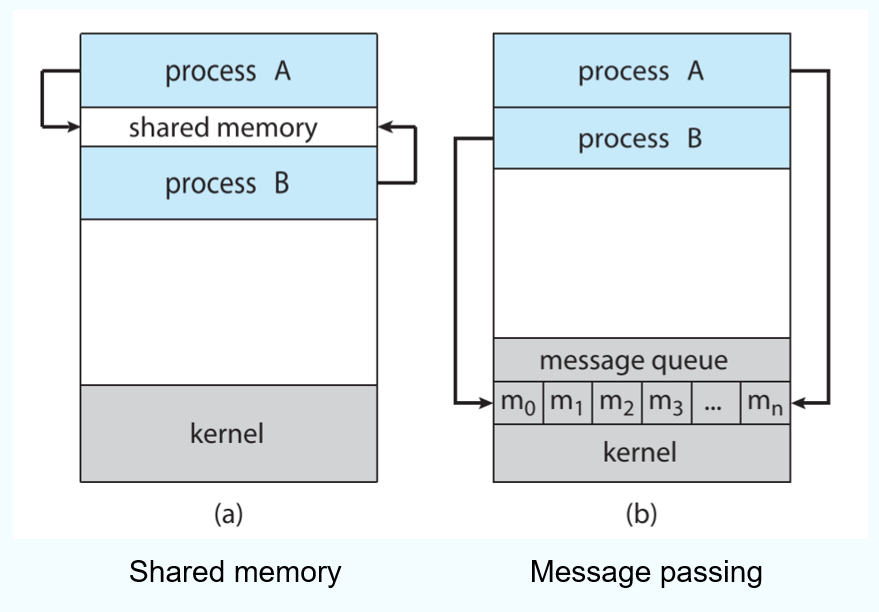 - 各进程不共享内存,而是通过发送(send) 和 接收(receive) 消息来通信。