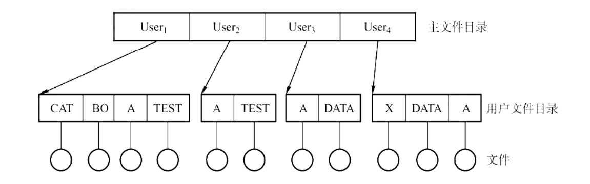 为了适配多用户的操作系统,我们将 Directory 分为 Master File Directory 和 User File Directory 两级: