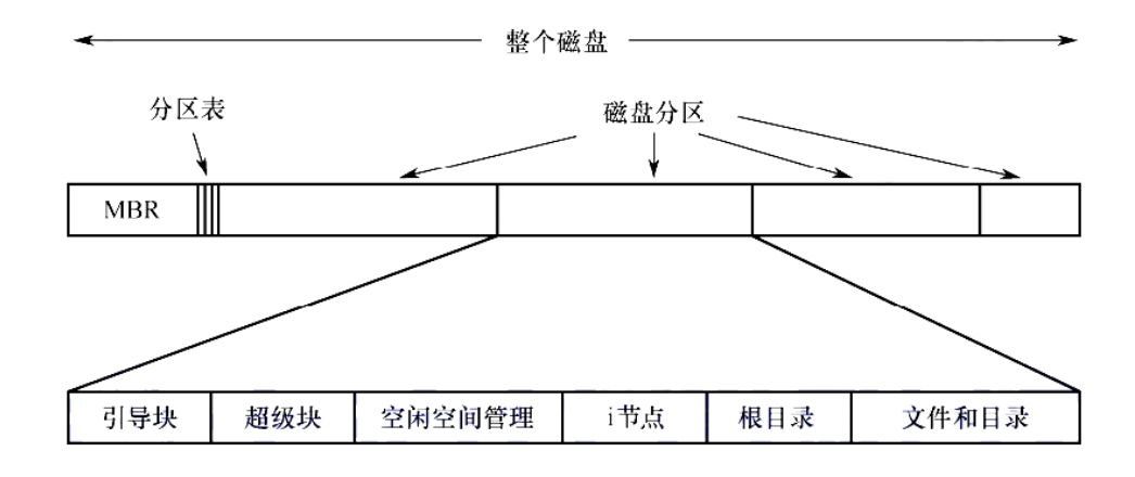 - 磁盘结构 (需持久化): 磁盘被划分为多个分区(卷),每个分区中有一个独立的文件系统