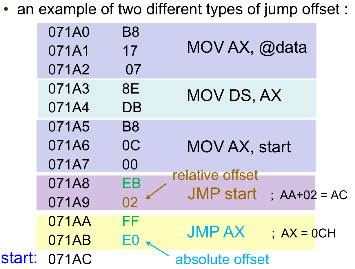 根据 jump offset 的类型,可分类为以下两种: