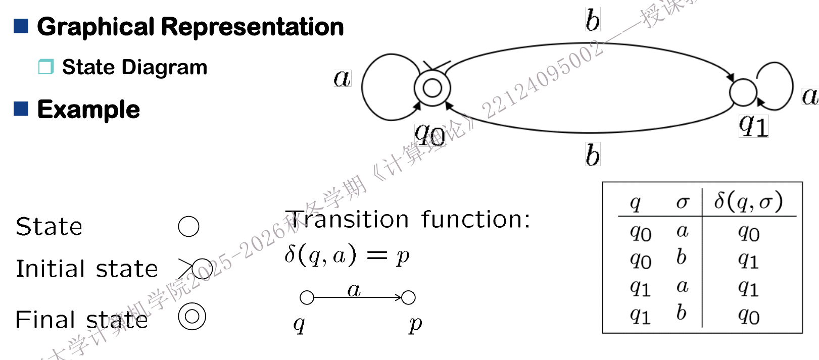 - \(\delta\): transition function