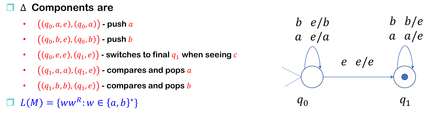 - 后一个 \(\Gamma^*\) 是转移后要 push 进去的字符串