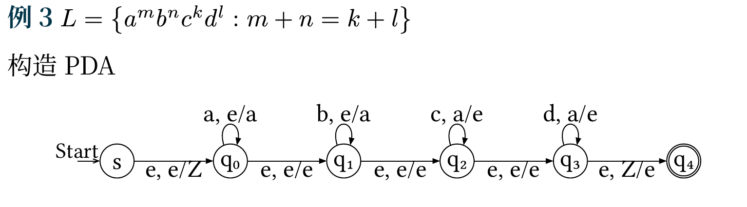 - 相对于 NFA 的 \(\left(K\times (\Sigma \cup \{e\}) \right)\times K\),在转移前后都增加了栈相关字符串