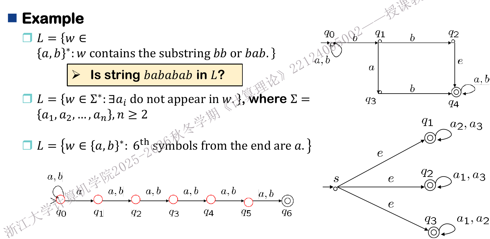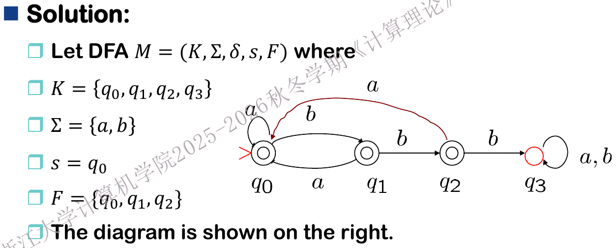 如果我们想要 \(L_2=\{w\in\{a,b\}^* : w\text{ 包含三个连续的 b}\}\) 怎么办?